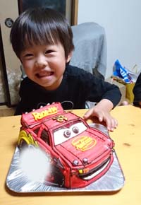 残ったケーキ、大人もたべましたが、おいしかったです。私は気にならなかったのですが、旦那は、マックイーンの赤が、やはり毒々しく感じてしまったようなので、天然素材の色の開発、がんばってください(笑)